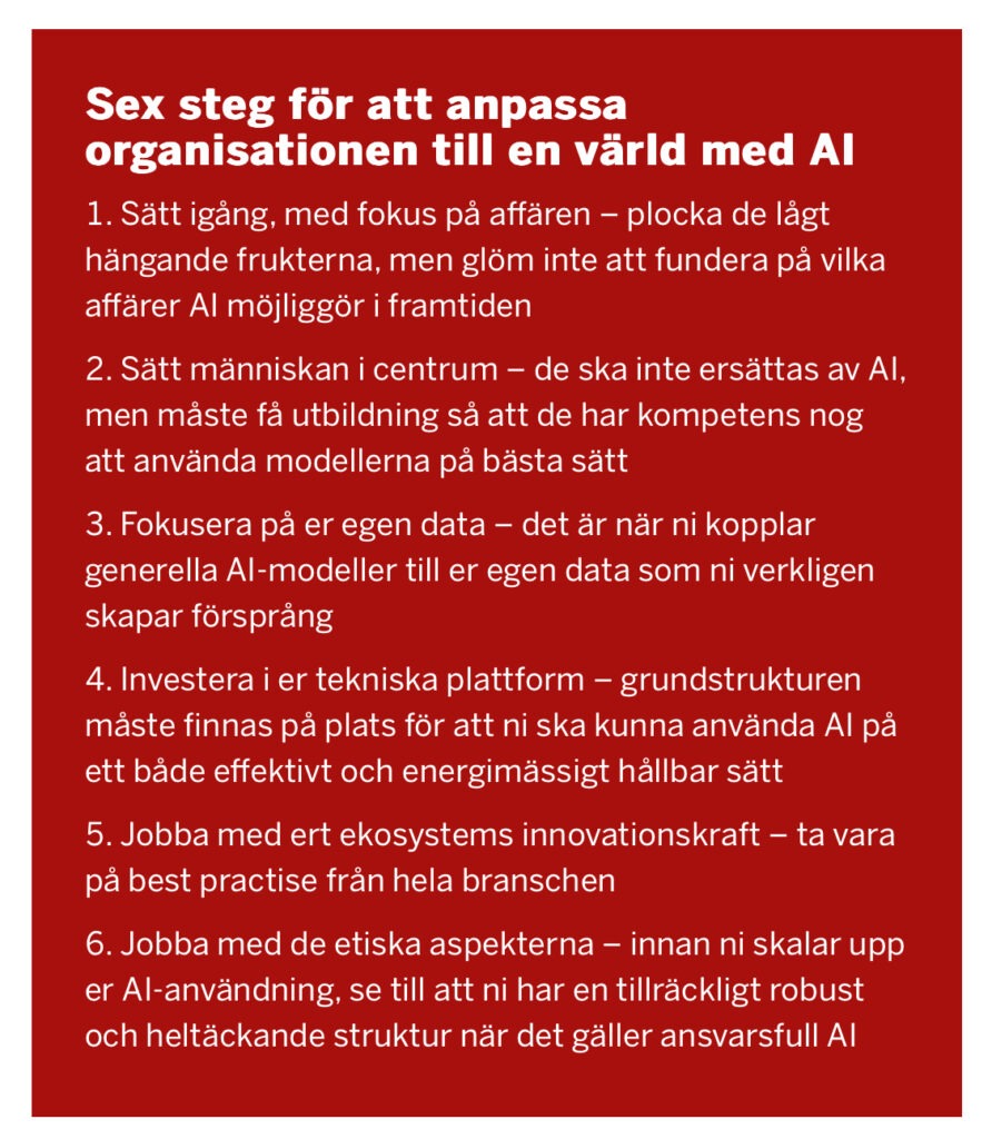 ”– Det handlar om överlevnad, både på kort och lång sikt. Det är inte så att tekniken i sig kommer att konkurrera ut företag, men de som lär sig att etablera och möjliggöra användandet av generativ AI kommer att konkurrera ut de företag som inte gör det.”
