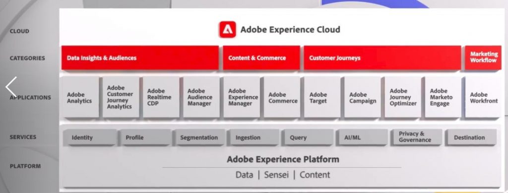 Förvärvet Adobe Workfront (numera egna delen, eller divisionen ”Marketing Workflow”) har under senaste året kopplats ihop närmare med Adobe Creative Cloud. Helt logiskt då det är den USP Adobe haft sedan starten inom ”kundupplevelse” och en direkt, klassisk koppling till alla marknadsavdelningar och CMOs traditionella, redan inköpta mjukvara. Som marknadsgrupperingen var vana att arbeta på. Även Adobe Experience Manager DAM är inkopplad här, för en god Employee Experience hantering inom marknadsenheten och för att i det långa loppet då skapa god extern CX.