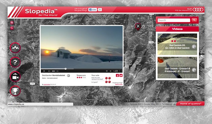 Earth People och Åkestam Holst har skapat en WordPress 3 CMS produktion till Audi. Nya kampanjsajten Slopedia tillåter användare att ladda upp videor från skidturer och ”lägga beslag på” nedfarter runt om i världen.