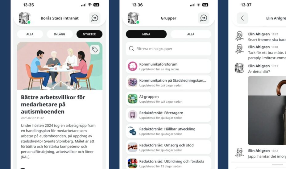 Borås Stad utökade nyligen egna internkommunikationen med en app som är tänkt fungera som en alternativ kommunikationskanal vid driftsstörningar. Projektet initierades 2022 då Borås kände behov av en ytterligare kanal för de egna anställda. Appen i färdig form matas nu med information från det egna intranätet i Sitevision med dess sociala funktioner, wrappat i en mer självständig nativeapp.