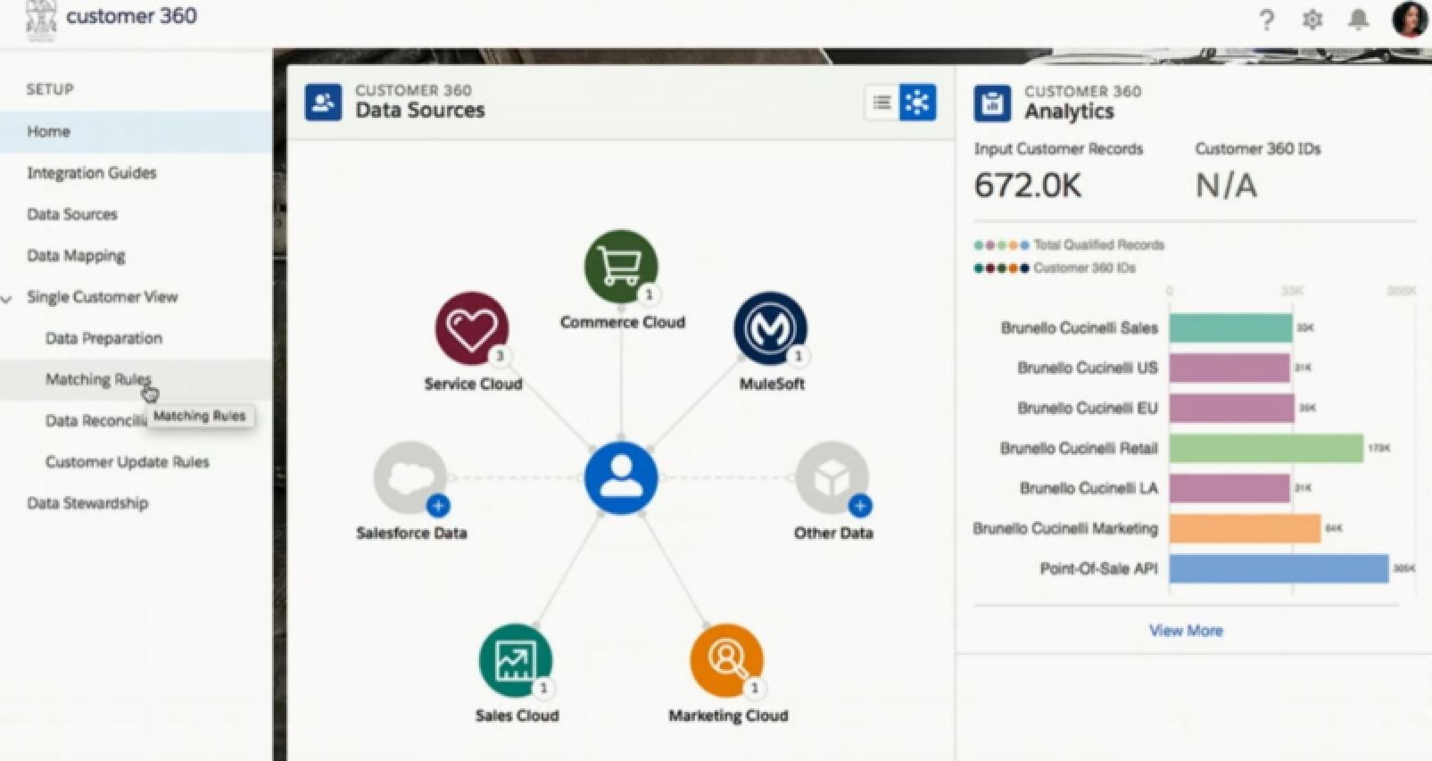 Vilka företag inom er sektor valde vilken konsultbyrå, och varför? Klicka här för info om mest attraktiva partners.Brunello Cucinelli har, i ett större gemensamt Customer 360 projekt, knutit ihop e-handel, CRM, en massa databaser för att verkligen ge en unison, gemensam vy. Detta är Salesforce stora fokus för året och inför 2019. Den gemensamma och grafiskt sammanknutna vyn har de kunnat skapa med Mulesoft förvärvet. Det sägs att Salesforce efter alla tidigare förvärv (CloudCraze, Heroku, Demandware etc.) bedömde sitt behov av Mulesoft-licenser och konsultation vara så stort att de ”lika gärna kunde köpa upp hela bolaget”.