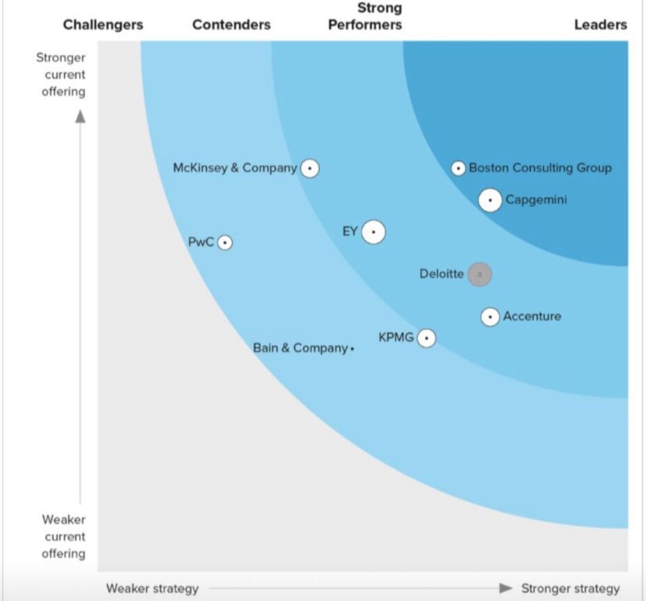 AI definieras här av Forrester som hur väl IT/managementkonsulten är på strategi, se vision och jobba med innovation.
