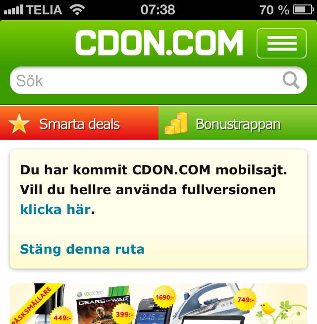 Ännu ett exempel på responsiv designs dominans i förhållande till de tidigare mobilwebbarna i silon. E-handelsgiganten CDON, som utreder och testar väl innan de rullar ut något nytt, överger sina 2-3 år gamla separata mobilwebbar för en gemensam, responsiv design.