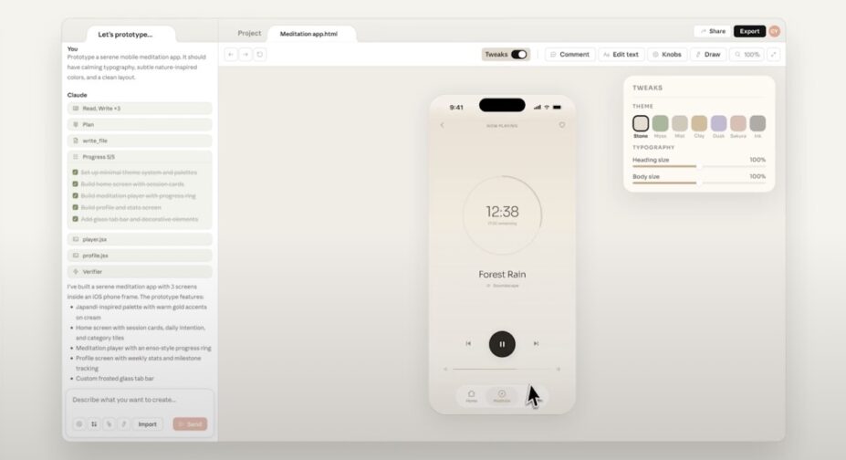 Därefter kan arbetet förfinas genom konversation, direkta redigeringar eller anpassade reglage som Claude skapar i realtid för att justera saker som färg, typografi eller mellanrum.