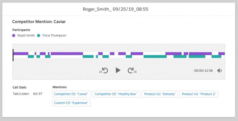 Einstein med Service Cloud Voice i bakgrunden kommer använda sig av Natural Language Processing för att identifiera nyckelord i olika säljsamtals-transkript. Så att ett företag kan identifiera röstsamtal om trender, som ofta förekommande branschtermer hos en konkurrent. Som nämns mer konsekvent. Eller när en konkurrent diskuterar ekonomi eller prissättning.