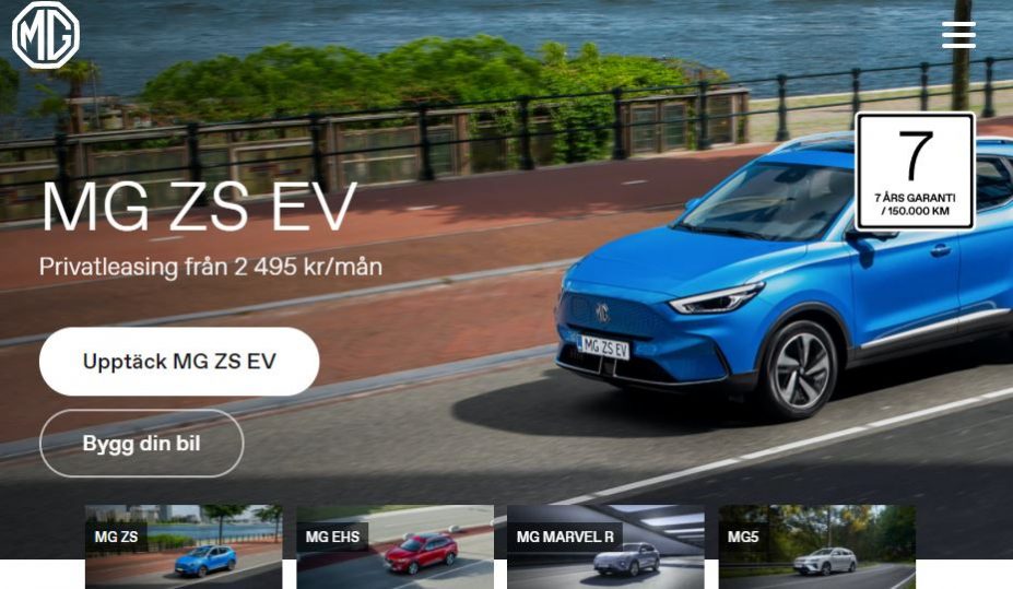 Det startade som MG och Morris Garages 1924, men är idag kinesiska elbilar. Varumärket gick i graven våren 2005 men köptes sedan upp av kineserna. Tillverkade av bolaget SAIC i Zhengzhou. Den helt nya generationen bilar från det tidigare ikoniska märket har sedan starten lockat svenskar med 7 års nybilsgaranti på alla bilar samt priser som startar på, i elbilssammanhang billiga, 389 990 SEK.