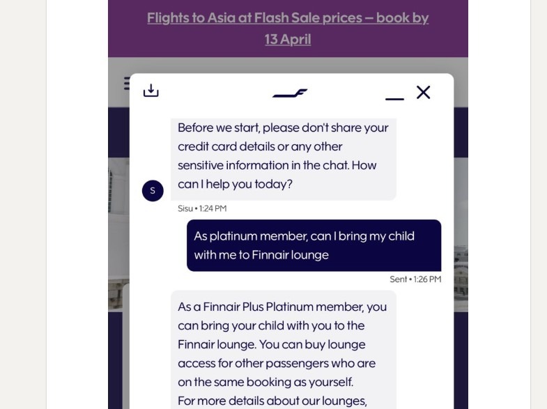 I ett projekt med Ultimate AI har Finnair berättat de har 250 kundtjänstombud som hanterar tiotusentals förfrågningar per månad.