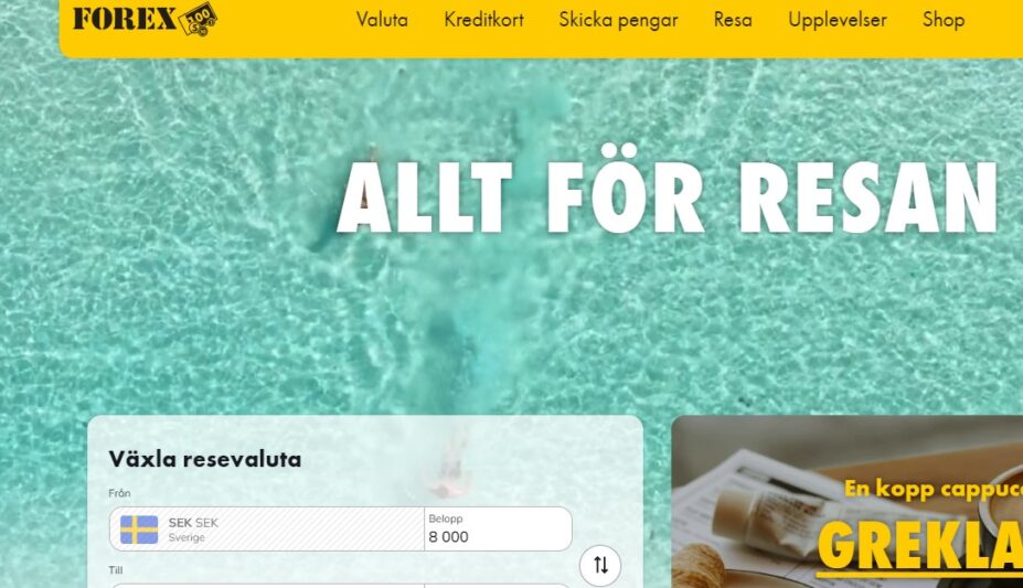 Forex kallar sig Nordens marknadsledare på resevaluta sedan 1965. De erbjuder även möjligheten teckna reseförsäkring, skaffa kreditkort och skicka pengar utomlands.