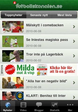 Inför VM släpper TV4 Fotbollskanalen.se (på webben på en Polopoly CMS) sin första iPhone app.