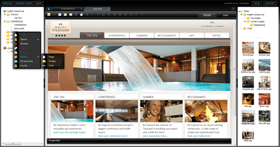 Sajten ligger fortfarande på Onclick CMS 6.4.1, ett mindre custom CMS som hotellet använt några år.