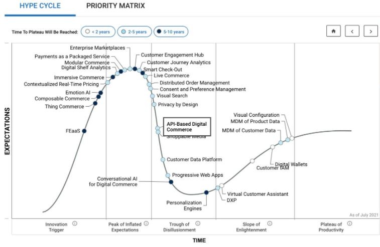 Nya, enligt Gartner ofta överdrivna hypar, är H2 2021/2022 att vänta kring Modular Commerce, Digital Shelf Analysis, Immersive