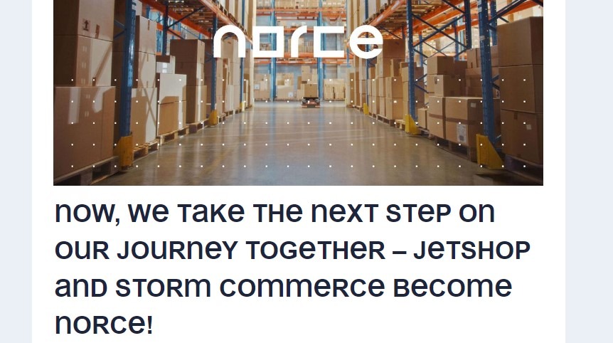 Med ett närmast kyrilliskt nytt typsnitt (tidsenligt?) berättar Jetshop och Storm Commerce att det nya namnet blir, varken eller. Det blir istället Norce på en ny norce.io domän. Norce.com pekar ingenstans och norce.se ger ett felmeddelande (Jetshop AB verkar ändå äga den). Anledningen till det nya namnet ska vara att få en riktig nystart med de kombinerade SaaS-förmågorna och egenskaperna.