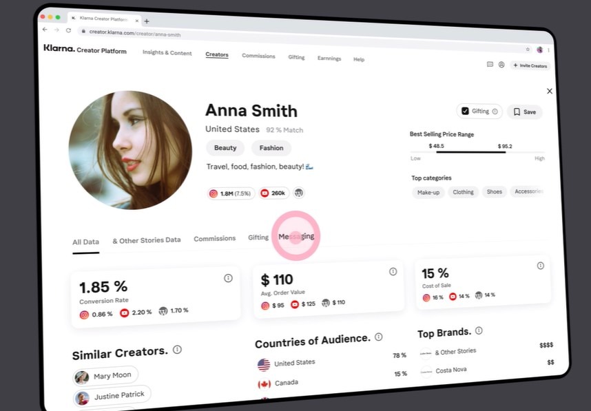 För säljande företag på appen kommer även det sista tillägget. Uppköpta bolaget Apprl har blivit en ny typ av kreativ skaparplattform för innehållsägare som vill komma i kontakt med t ex nano-, micro- eller mini-influencers på olika plattformar. Snarlikt svenska Collabs. De kan där direkt komma i kontakt med en influencer och förse denna med sina varor mot att personen skriver om och sprider ordet om företaget. Alla typer av ersättningar och rabatter kring dialogen sköts så klart via Klarna och appen.