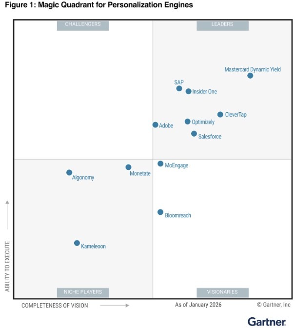 Ny månad och en ny Gartner MQ att ladda hem för de som har intresse i att ställa Adobe, Algonomy, Bloomreach, CleverTap, Insider One, Kameleoon, Mastercard Dynamic Yield, MoEngage, Monetate, Optimizely, Salesforce och SAP mot varandra. Marknaden för personaliseringsmotorer ska växt under förra året med 26.1% för att nu vara värd runt 12 miljarder SEK enligt Gartner.