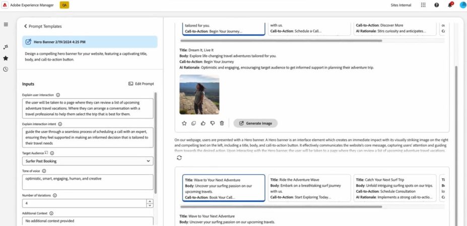 Adobe har berättat mer om hur genAI ytterligare adderats och förstärkts till uppdaterade Adobe Experience Manager Sites. Det handlar fortfarande främst om copywriting och bild content skapande med en mängd olika varianter. Men stödet har förfinats rejält för att passa olika typer av kunder, målgrupper och användare.