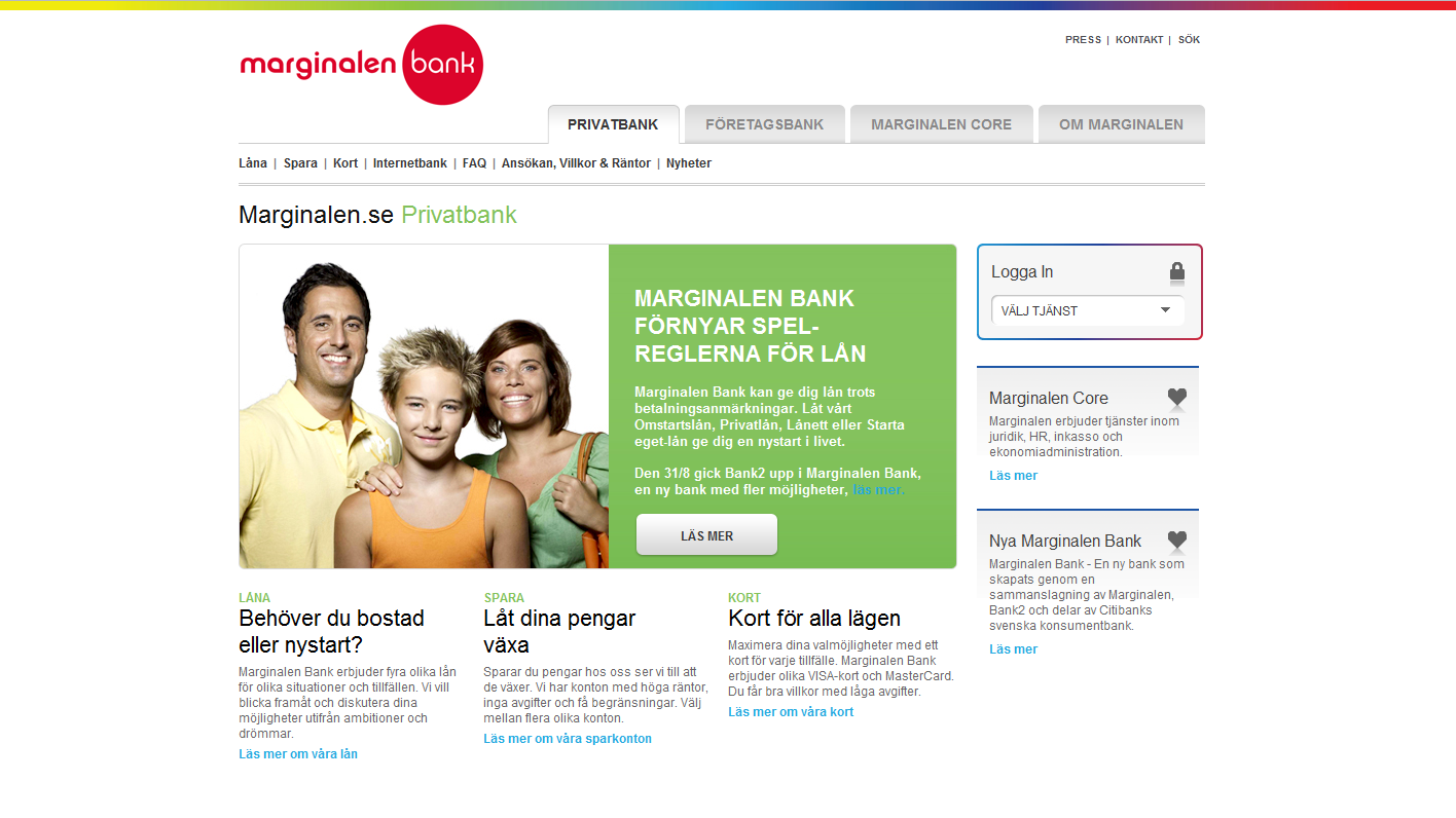 Nansen har släppt förvärvsbyggda (Bank 2 och Citibanks svenska del) Marginalens nya webb på EPiServer CMS 6.