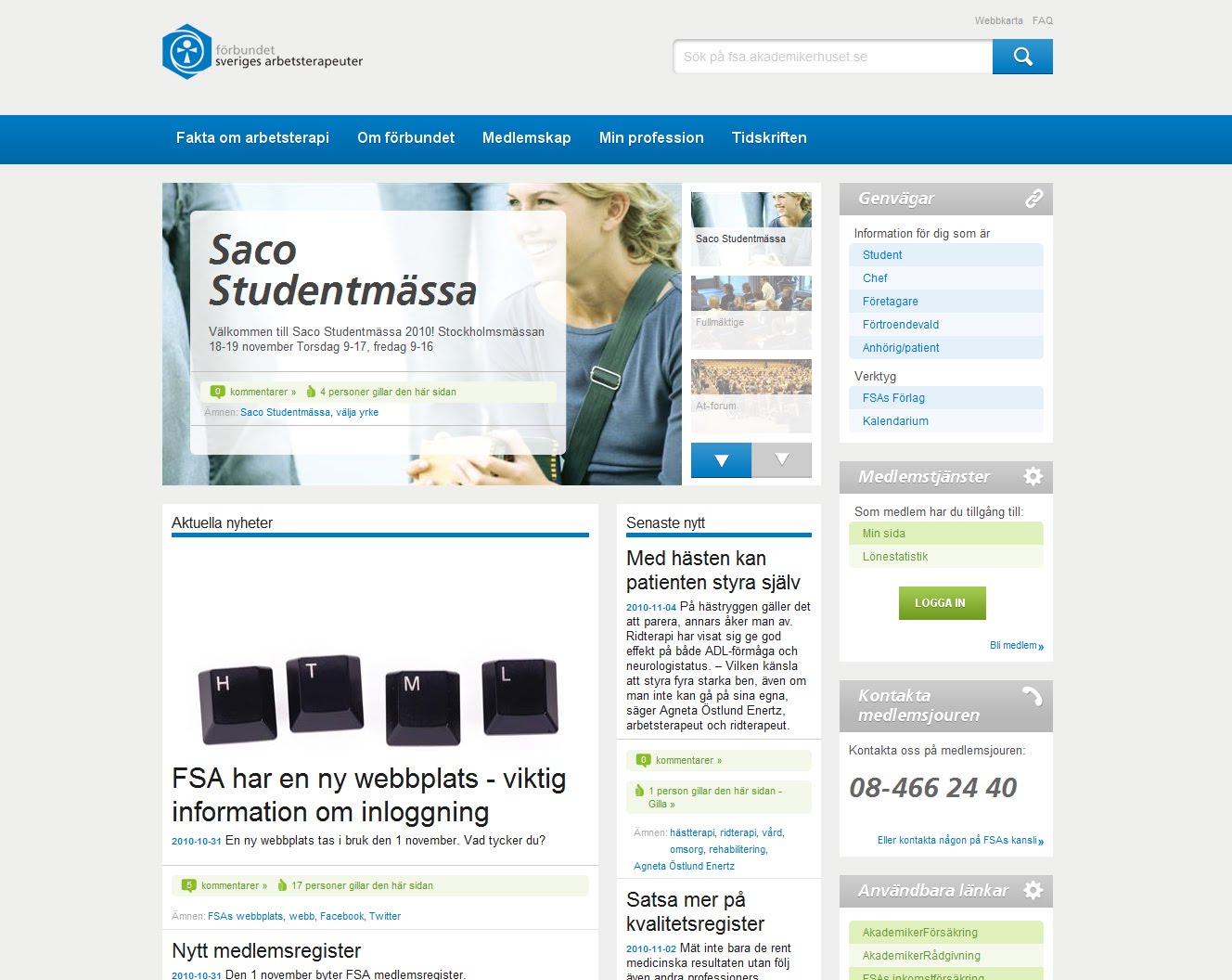 Förbundet Sveriges Arbetsterapeuters (inte Föreningen, Nansen ;) har fått en ny webbsida på EPiServer signerad Nansen och Söderhavet.