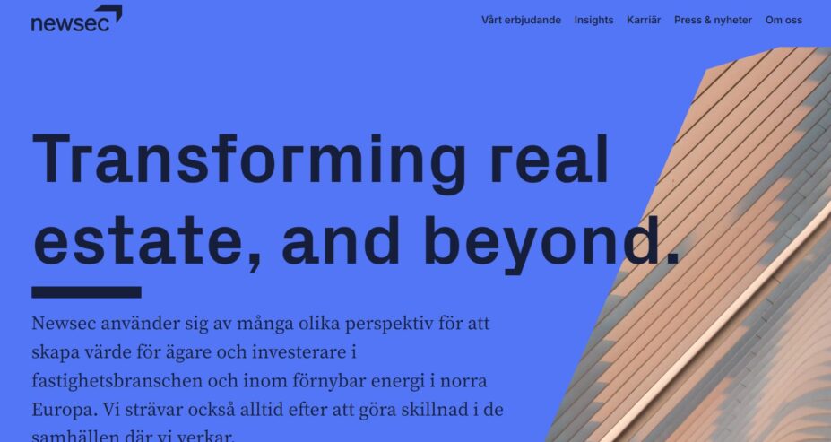 Newsec kallar sig expert på fastigheter och verkar inom rådgivning, investering, förvaltning samt energieffektivisering och digitalisering på sju marknader i Norden och Baltikum.