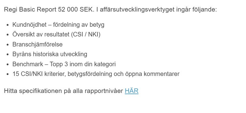 Regi intervjuar kunderna för underlaget gratis, men att därefter köpa loss sin Basic rapport går på 52 000 SEK i en engångsbetalning.