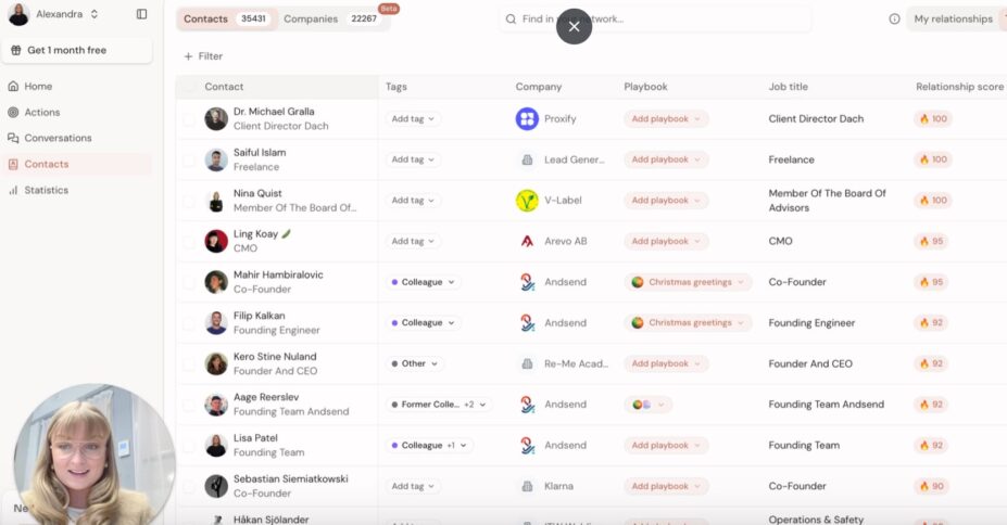 Sedan tidigare erbjuder Andsend ett stöd för att på främst Linkedin förstå styrkan i olika relationer och kunna unisont agera på den. Nu finns även ett nytt Network Score, Smart Tags där en AI assistent berättar vilka leads som ska följas upp och varför, Initiatives playbook för att designa ett eget networking workflow och Team Insights som hittar prospects genom kollegans nätverk.