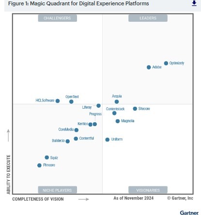 Det blev inte en åttonde gång med samma ledare och topplaceringar. Optimizely är ny totalledare i nya Gartner Magic Quadrant for Digital Experience Platforms 2025 som just släpptes.