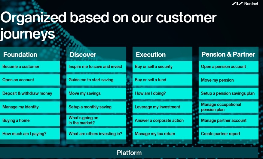 Extremt snabba, omfattande och rappt sjösatta förändringar inom Nordnets tech miljö är en verklig nyckel för tradingaktören. Det stod klart under förra årets Nordnet Tech Days där bolaget ständigt återkom till vikten av ”fail fast” men ändå hela tiden utvecklas framåt med sina totalt 29 agila team av frontendare, analytiker, backendare och produktägare m fl.