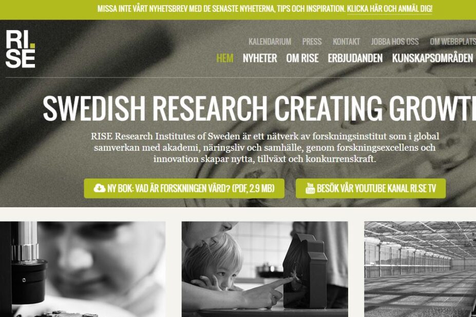RISE Research Institutes of Sweden är ett nätverk av forskningsinstitut som i global samverkan med akademi, näringsliv och samhälle, genom forskningsexcellens och innovation skapar nytta, tillväxt och konkurrenskraft.
