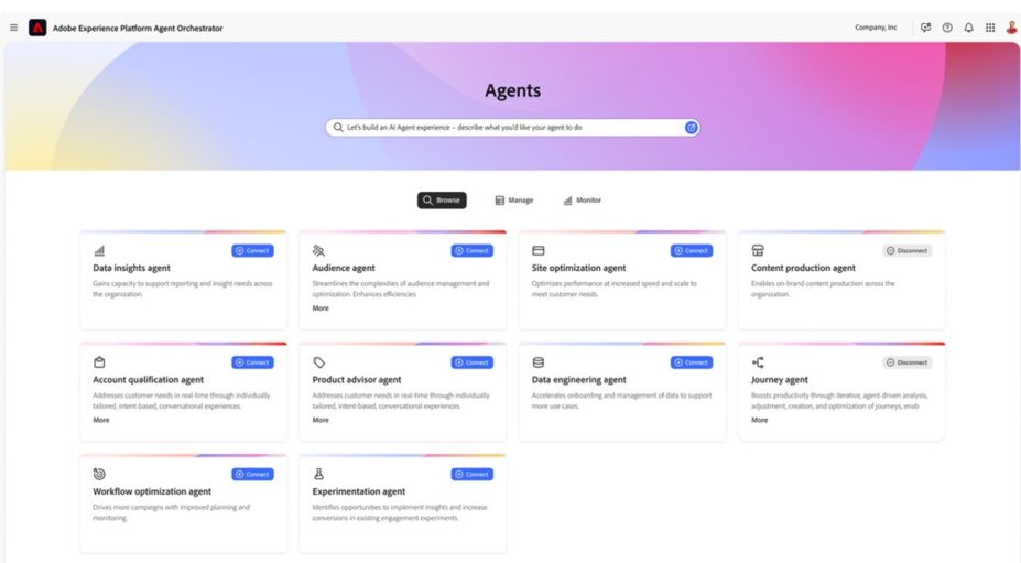 Under Adobe Summit som just sparkade igång i Las Vegas presenterar Adobe sitt nya AI Agent stöd i uppdaterade Adobe Experience Platform Agent Orchestrator. Adobe kastar ut hela 10 ”purpose-built AI agenter” som inkluderar: