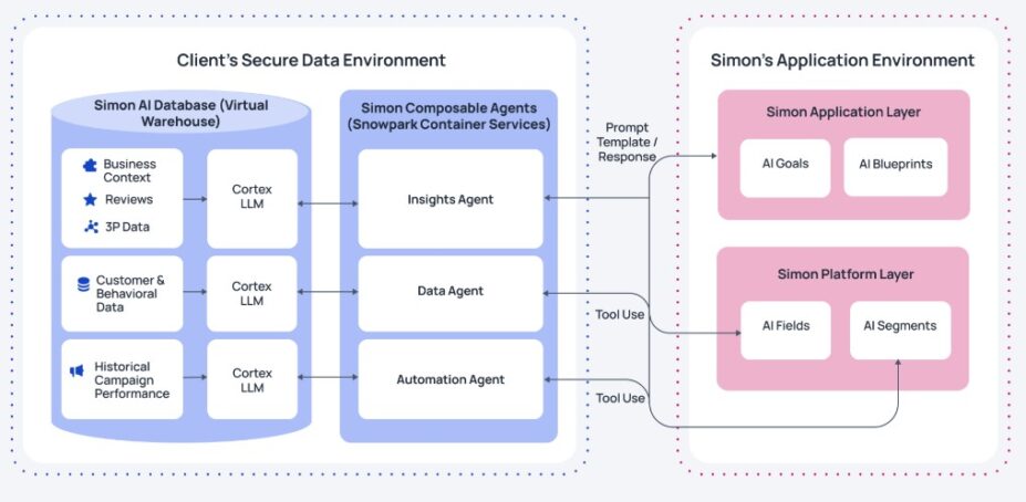 Säger Jason Davis, VD, Simon Data. Simon Data använder sig av Snowflake Cortex AI och Anthropics Claude LLM i en ”proprietär” kombination. Idén med en komponerbar AI-agent här är den att de ska låta olika användare välja bland just sina tiotusentals martechstöd och därefter låta agenterna styra de egna, och bäst lämpade ”komponenterna” per användare. Därav composabe AI-agenter.