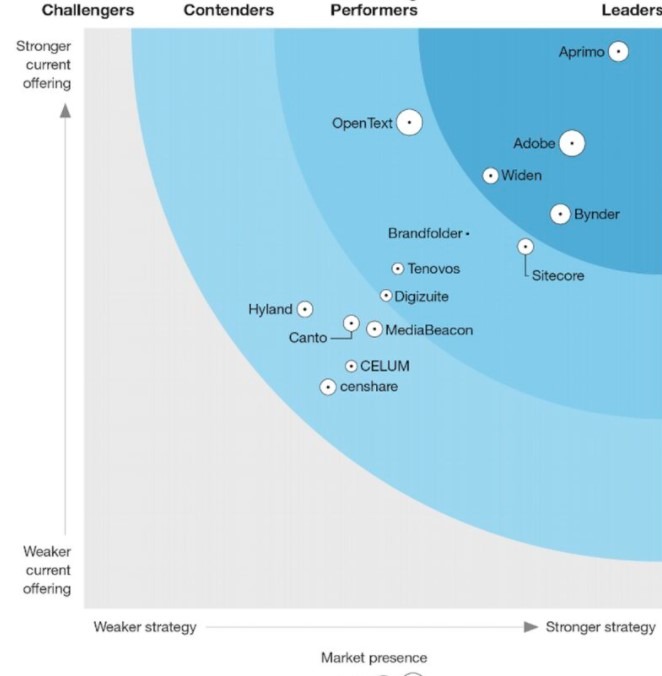 Forrester har släppt loss 2022 års ”Forrester Digital Asset Management for Customer Experience Wave” som är viktig i en bransch där PIM/DAM stadigt ökar i betydelse. Utanför eller innanför produktsviterna. Det är en absolut ledare Aprimo. De har legat högt sedan 2018, men har 2022 dragit från t ex Adobe och OpenText. Som är tidigare ständig tvåa och trea. Den sistnämnda har nu passerats helt av Widen och Bynder som är nya ”ledare”.