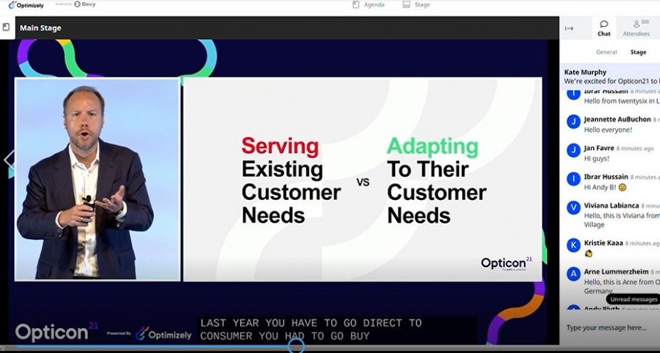I den senare återfinns Fitbits ansvariga för Platform Engineering Dawn Baker som är en användare av Optmizely sedan MTV- och A/B-testtiden och hennes början på bolaget 2016. Hon både inledningstalar strax efter Optmizelys VD Alexander Atzberger inlett eventet samt återkommer 30 minuter senare med en hel session om samarbetet tillsammans med Optimizelys CMO. Uppenbarligen ett varumärke och en kund Optimizely vill förknippas med.