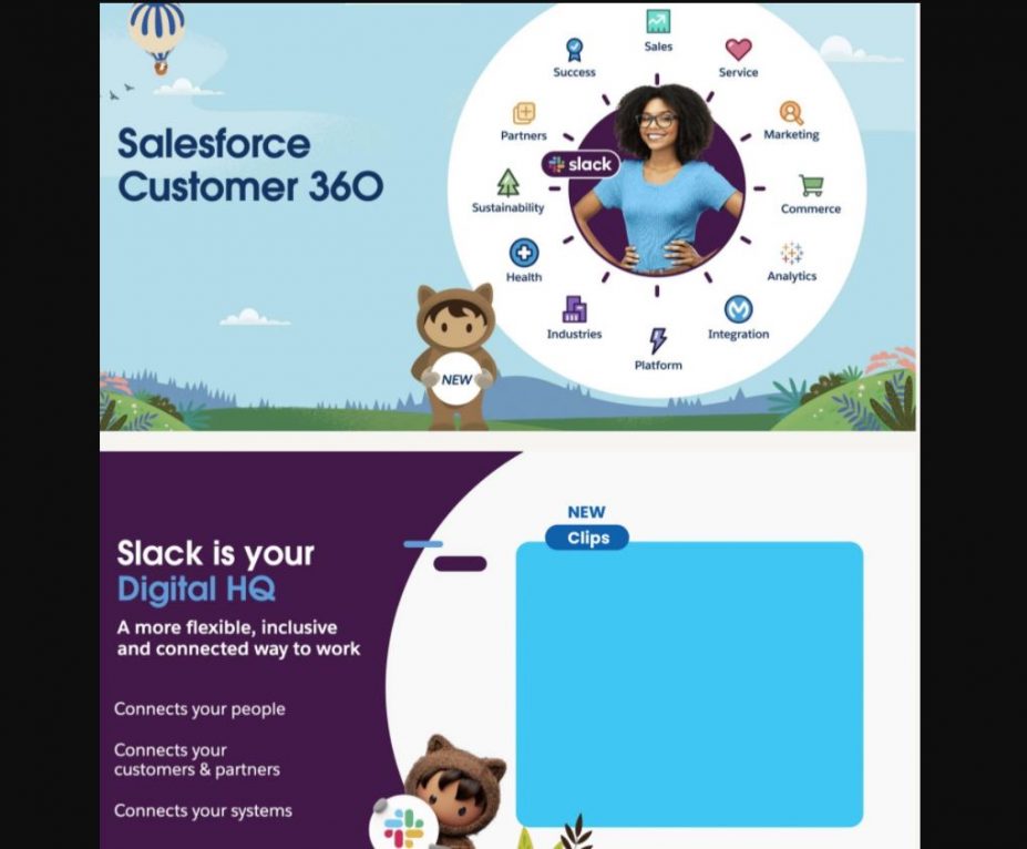 Detta ”högkvarter” syns väl i egna nya portfolioöversikten. Där Slack, liksom Marc sade i ett uttalande vid förvärvet, ska användas som en helt central kommunikationsnod i samband med alla de andra förvärvade delarna. I relation till kärnverksamheten CRM. Som Sales, Service, Marketing, Commerce, Analytics, Integration, Platform, Industries, Health, Sustainability, Partners och Success. ”Digital HQ” i sin tur definieras av Salesforce, sedvanligt lättsmält, som en mer flexibel, inkluderande och sammankopplat sätt att arbeta