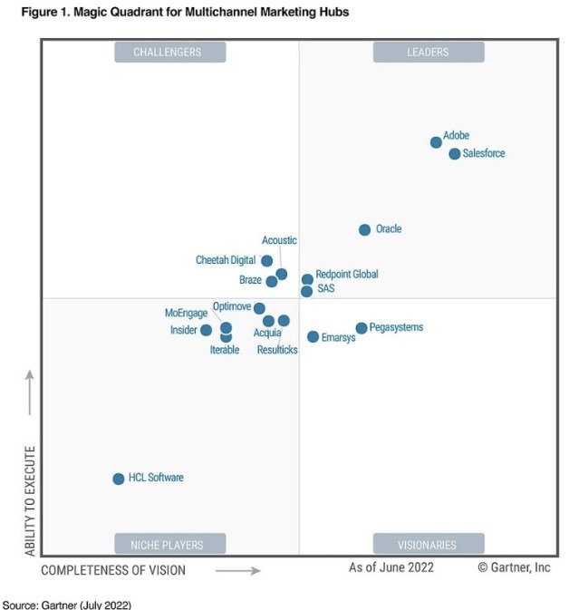 Vad har SAP och HCL gjort för att reta upp Gartner? De är nästan de enda aktörerna som inte återfinns i mittenklungan i årets Multichannel Marketing Hubs. De trycks istället ut.