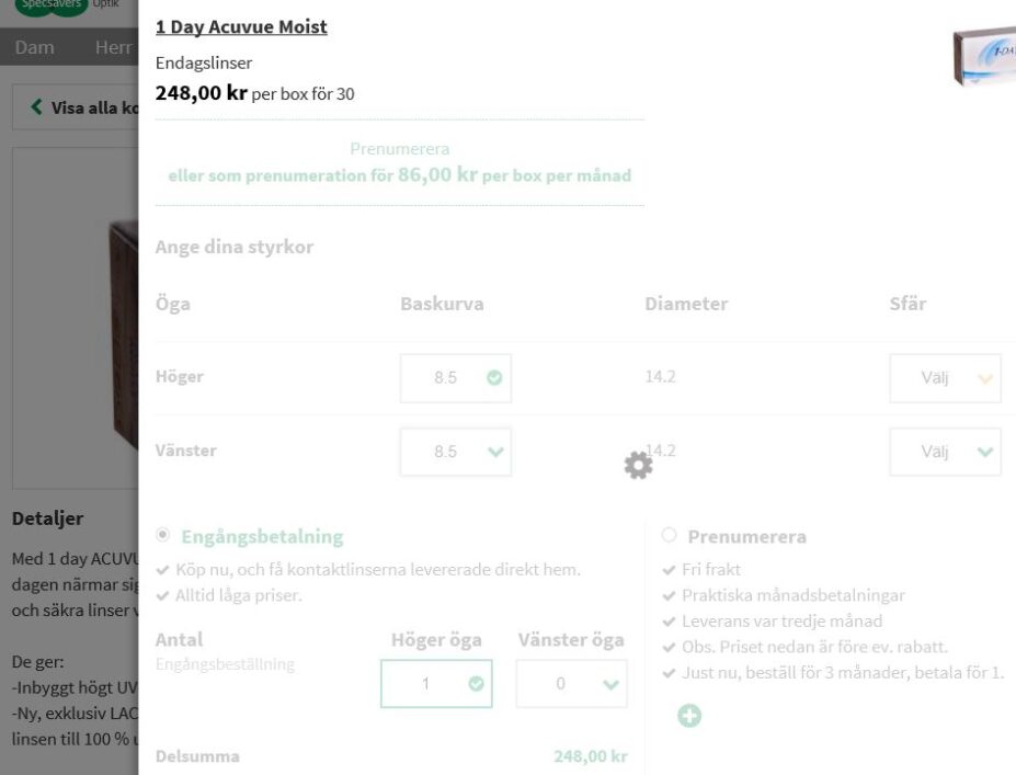 Specsavers är utåt en Drupal 7 användare med svenska Specsavers.se. En enklare, och väldigt segladdad Drupal Commerce samt tillhörande varukorg används idag för vissa prenumerationstjänster på t ex linser. Och denna hämmas idag av en mycket tidskrävande javascriptladdning för att t ex köpa och prenumerera på varor. Allt sker dessutom i en lightbox som effektivt riskerar avbryta och hejda många pågående onlineaffärer idag.