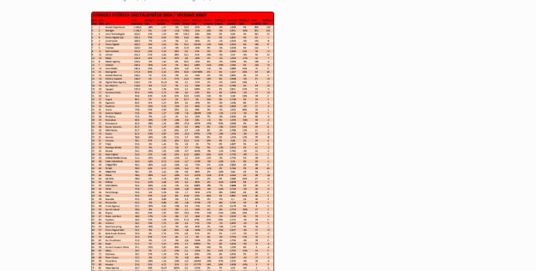 Veckans Brief har analyserat 100 av Sveriges största digitalbyråer, som de brukar. Det visar sig att digitalbyråbranschens minskar det aggregerade rörelseresultatet med hela -30 procent. Under 2024 minskade branschens totala nettoomsättning med 0,1 procent till 9,4 miljarder kronor. I jämförelse tappade kommunikationsbyråerna 2,7 procent under 2024. Branschens 15 största byråer ska idag stå för 63 procent av branschens totala nettoomsättning, en ökning från 61 procent år 2023. Bland dessa ökar...