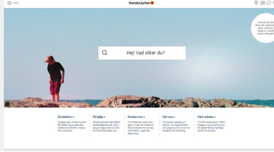 Svenskakyrkan.se förses med ny responsiv design och en ny, väldigt centralt placerad sökmotor introduceras (se bild). För tankarna till Meridiums innovation med Kalmar.se, men det var 8 år sedan (!).