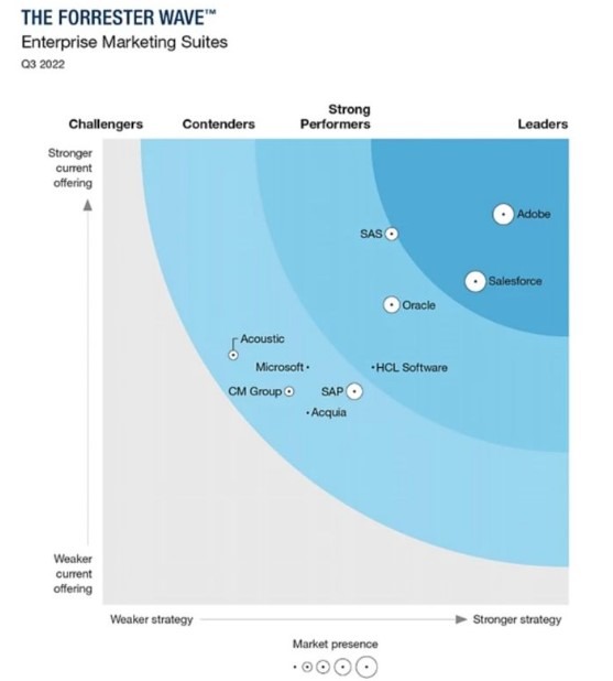 Svitpridukterna inom Forrester Enterprise Marketing Suites 2022 och CX/CMS/Ecommerce/analys/martech/etc. svitidén generellt står och stampar något. I flera avseenden, visar det sig i årets Wave som nyss släpptes ut till allmänheten. Knappt någon förändring har skett sedan 2021 års svitgenomgång av analytikerna på Forrester.