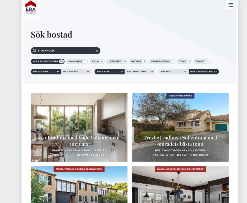 Vilka svenska bolag har redan spenderat för mycket på fel headless-stöd och eventuellt missmatchade digitalstöd? Ett MKSE Patreon Premium-konto öppnar upp för MKSE.com Lens och direktkontakt med innovation tech samtal. Prova gratis – en begränsad period.Projektets första fas ska varit framtagandet av ett uppdaterat grafiskt uttryck för ERA Sverige, därefter har struktur gjorts om med fokus på mest besökta sidor samt prestandan på sökmotor har förbättrats. Sökresultaten uppdateras numera omedelbart. När en besökaren scrollar sidan ska fler bostäder automatiskt laddas in, för slippa paginering och undvika onödig datatrafik.