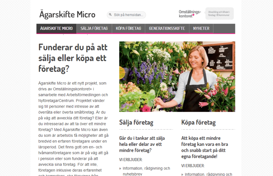 Kaigan har lanserat en ny MODx CMS i webbplatsen Agarskiftemicro.se En webbplats för EU-projektet Ägarskifte Micro som kommer löpa under två år och vänder sig till personer som vill överlåta eller överta små företag. På webbplatsen kan både säljare och köpare anmäla sitt intresse.