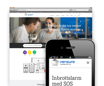 Verisure, det nya namnet för Securitas Directs hemlarm, har gått live på en snygg, ny SiteVision 3 CMS lösning. Den nya sajten har ”kontakta mig” fält i call-to-action fokus på startsidan, en parallax scroll liknande horisontell uppbyggnad, erbjudande-teasers i form av färgglada pratbubblor, filmer med one-click start (stylade och driftade hos Youtube), sidoscrollande puffar med övrigt innehåll samt förtroendeingivande faktorer.
