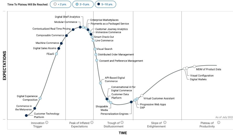 Vad händer egentligen inom composable commerce, Modular Commerce, headless, API-first commerce och alla andra megatrender inom e-handel. Gartner Hype Cycle for Digital Commerce har släppts i sommarvärmen och innehåller en hel del matnyttigt.